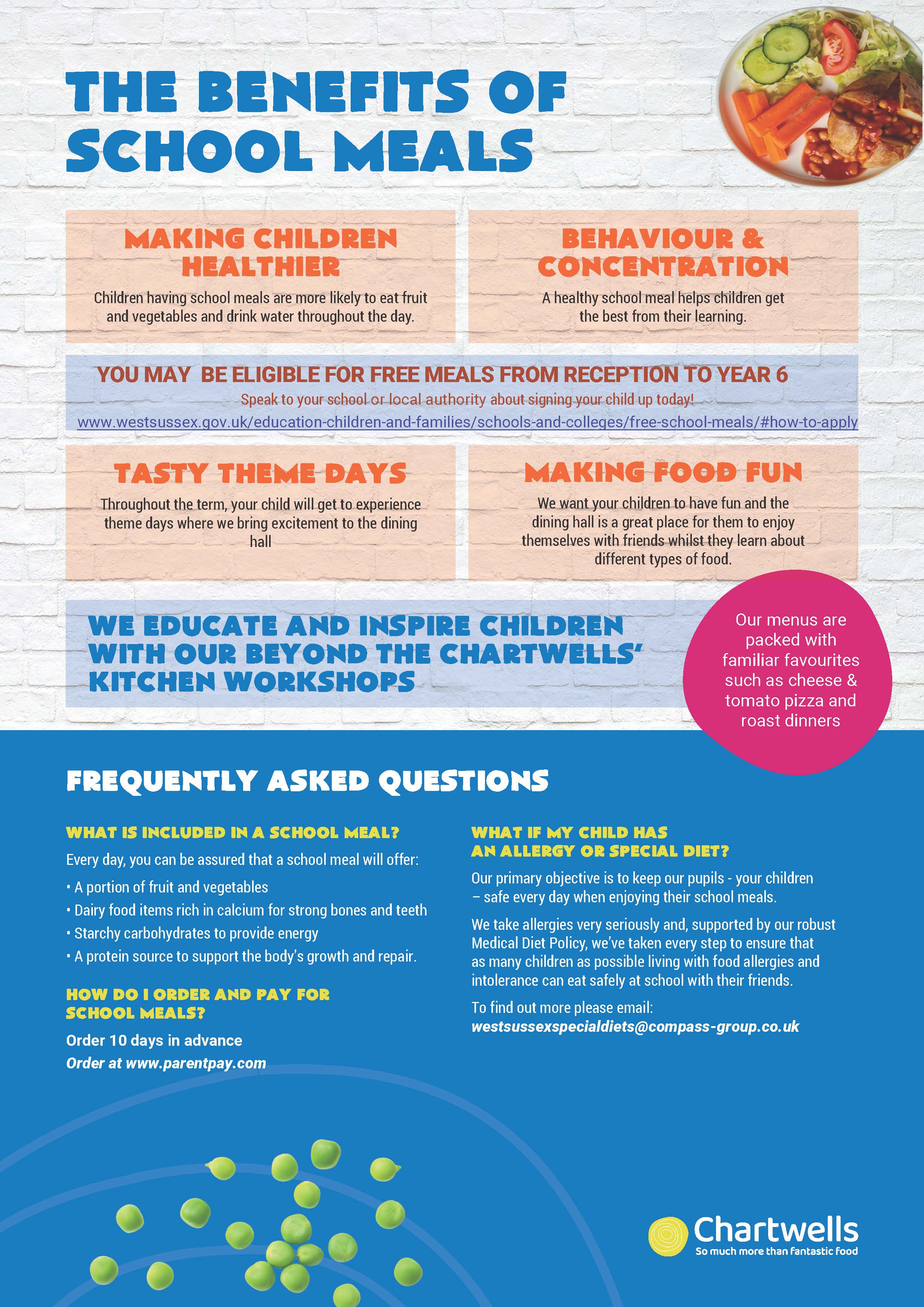 To find out more about Chartwells, visit their website or contact the school catering team. Weblink: https://www.chartwells.co.uk/west-sussex/